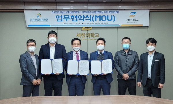 세한대학교, 한국산업단지공단 광주전남지역본부간의 업무협약 체결