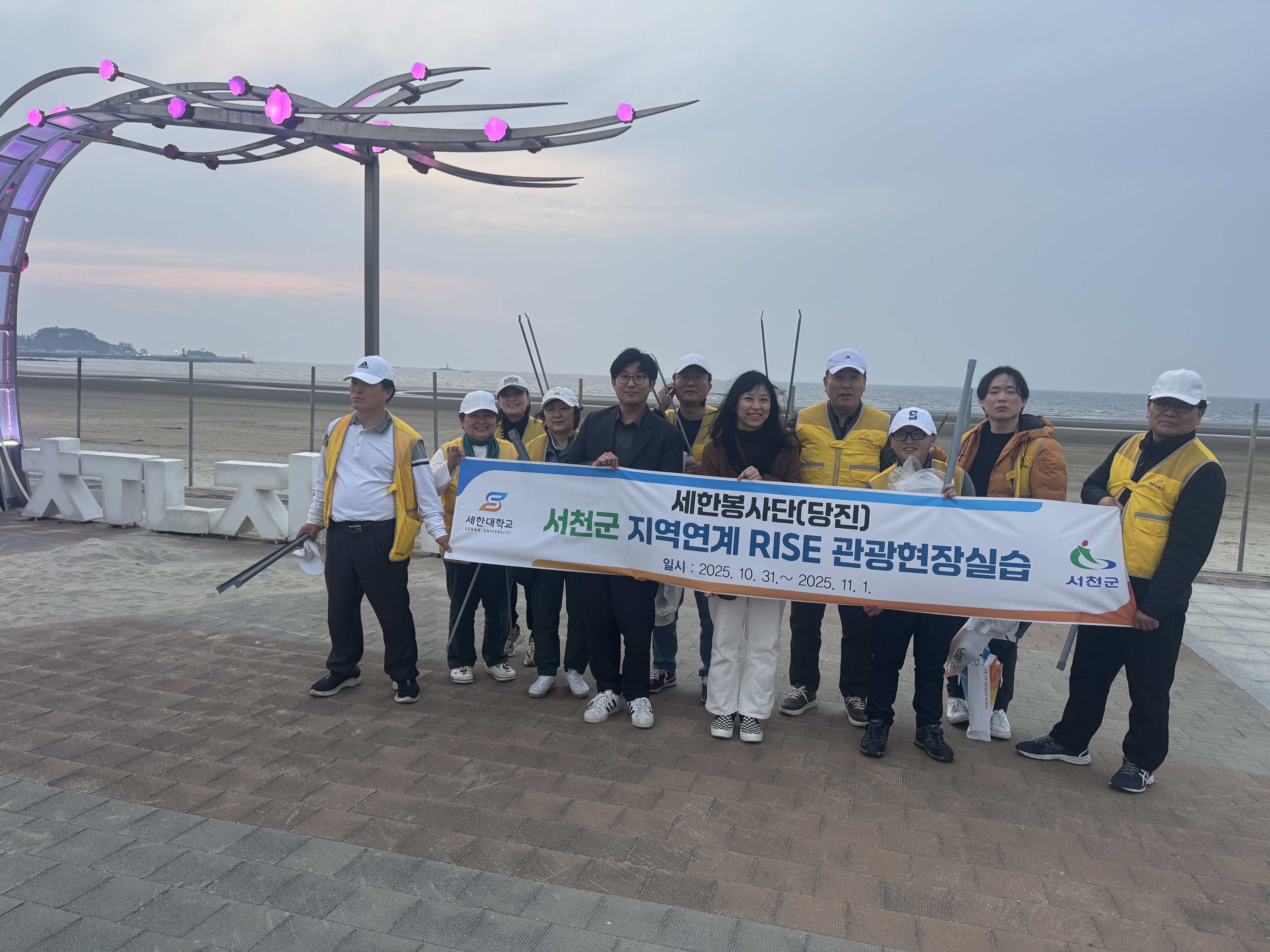 세한대학교 충남RISE사업단 SRL레저관광센터·SRL레저특화사업단(당진)이 세한봉사단과 함께 진행한 서천군 지역연계 RISE 관광현장실습 프로그램이 단순한 답사를 넘어, 현장 봉사와 지역참여 활동이 결합된 교육 모델로 운영됐다.