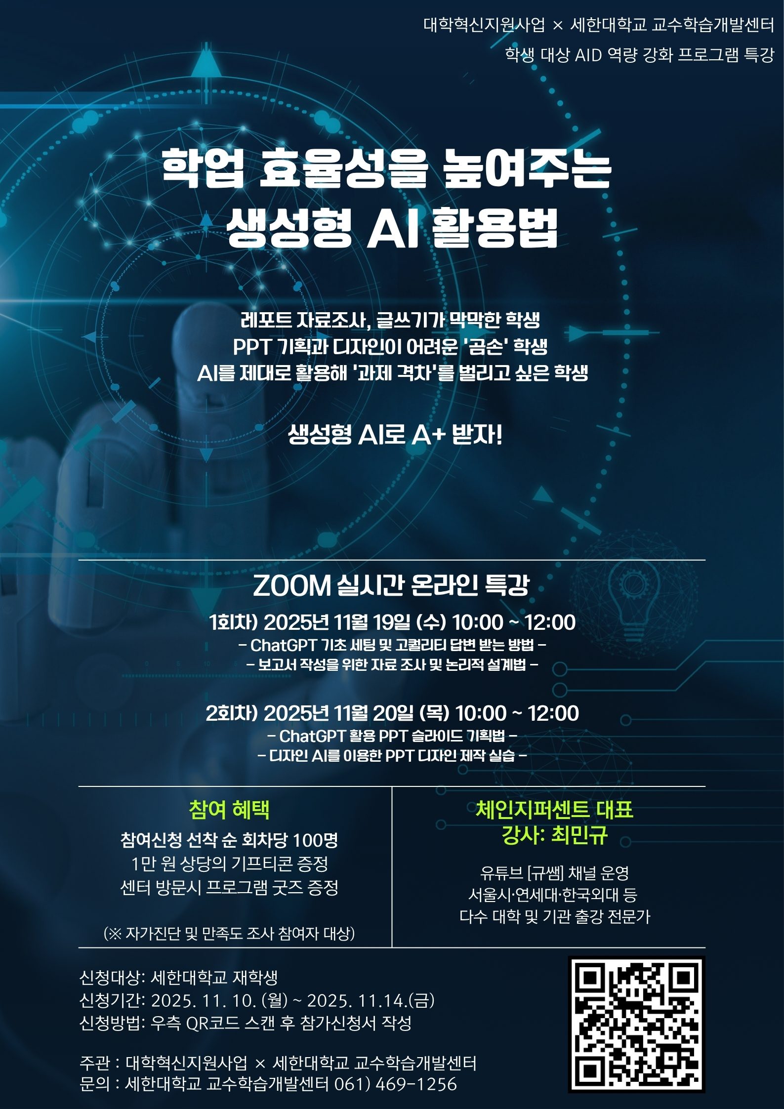 [대학혁신지원사업 x 세한대학교 교수학습개발센터] 학업 효율성을 높여주는 생성형 AI 활용법