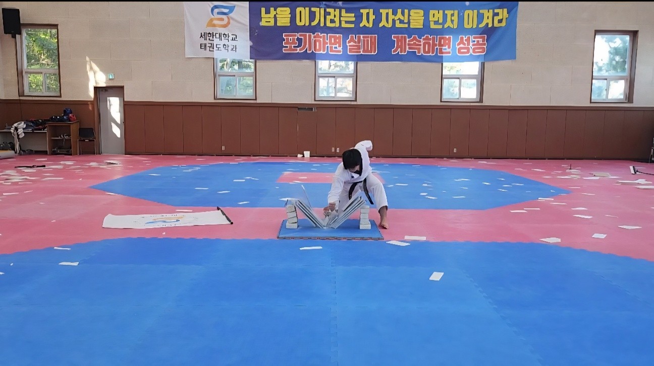 세한대학교(총장 최미순) 태권도학과(학과장 최공집)는 지난 2025년 11월 18일(화) 세한대학교 연희관에서 강소해사직업기술학원 환영식의 일환으로 세한대학교 연희관에서 태권도 시범 공연을 진행하였다.