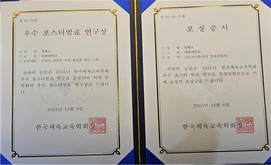 세한대학교 태권도공공안전학과 정현도 교수 제30주년 국제학술대회 우수 포스터 발표 연구상 수상