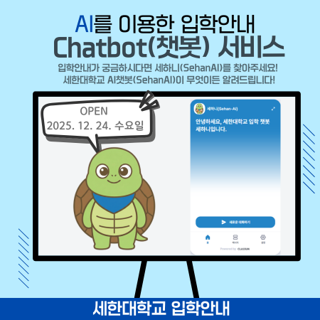 세한대, 생성형 AI 챗봇 '세하니(SehanAI)' 오픈… 24시간 스마트 입학상담 서비스 가동